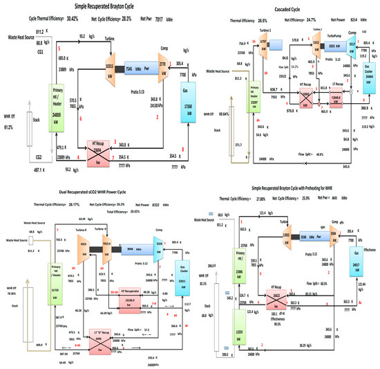 5.4. S-CO2 Cycle for Waste Heat Recovery