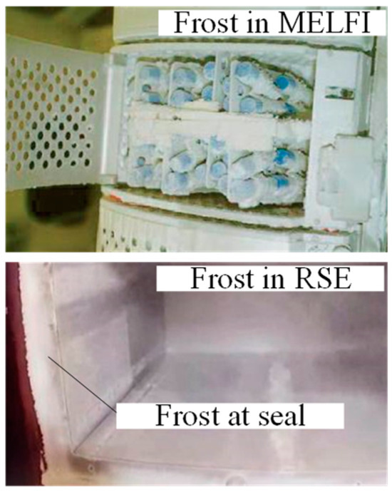 In addition, the frosting at the sealing area of the refrigerator can cause possible microleakage. Water vapor outside of the refrigerator could diffuse into the refrigerator, generating additional frost at the sealing area and the surface. When the frost layer reaches a certain thickness, it may cause the sealing failure of the refrigerator device.