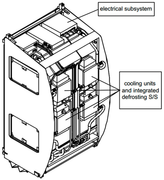 The ER types of space station refrigerator include the Minus-Eighty-Degree Laboratory Freezer for ISS (MELFI) [5,6] and ISS Crew Refrigerator Freezer Rack (RFR) [7]. There are a number of separate units with Dewar structures in MFLFI, which covers the cooling temperature zones of −80 °C, −35 °C, AND 2 °C. The MELFI is divided into four large storage zones, each of which is subdivided into four smaller drawers.