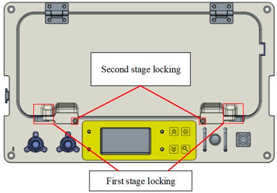 To solve the problem of the poor structural strength of hollow sealing strips, a two-stage locking structure is applied in this paper, which can prevent the destruction of the sealing strips under space station mechanical vibration conditions. The first-stage locking is a lever structure, which could reduce the operation force and is used in all periods. The second-stage locking is a screw locking, which can effectively control the relative position of the door and the seal, and is used in the transportation and launching periods. This locking structure is shown as Figure 4 and Figure 5.