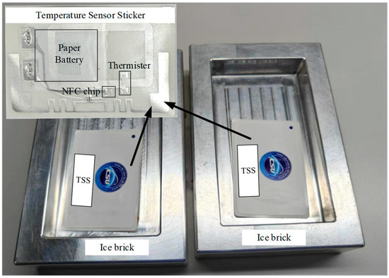 As using wired temperature sensors would damage the seal, temperature sensor stickers (TSS) were used to record the internal temperature. The TSSs are powered by paper batteries and have built-in microcircuits for temperature collection and storage, which are shown in Figure 11. After the test, the TSSs are removed and the recorded data can be read using NFC.