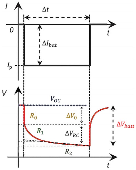 Response of the 2RC-type ECM to a current pulse in the PDT test, “Pulse Discharge Test” [44].