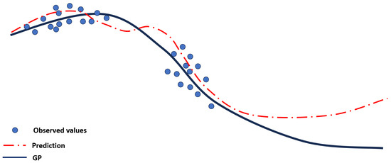 - Gaussian Processes (GPs): Gaussian processes are a probabilistic machine learning technique that can be used for regression tasks [74,75]. They work by modeling the relationship between input and output variables as a Gaussian distribution, allowing for uncertainty in the predictions. Since the forecast is based on a Gaussian distribution, the forecast can be improved using adaptive fitting [76]. The typical trend of a GPR model is illustrated in Figure 14.