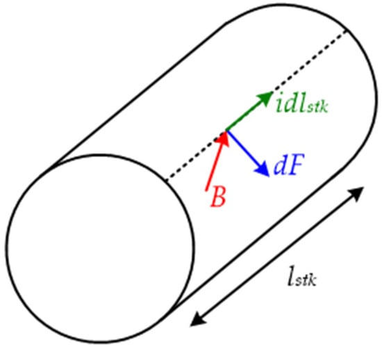 The Lorentz force law is used to calculate the output torque [] in the air gap (Figure 2). The force generated by a synchronous motor (dF) can be expressed as follows: