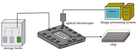 Thanks to the advances in chip processing technology, micro–nanofluidics technology has the advantages of the fine description of nanoscale pores and in situ visualization detection, providing a new experimental perspective for the study of unconventional oil and gas microscale seepage and phase characteristics []. It has become one of the most promising tools for visual analysis of oil and gas. Currently, it has been successfully applied in the petroleum and natural gas industry for physicochemical analysis [], heavy oil recovery [,], hydraulic fracturing [], chemical flooding [,,], gas flooding [], and other studies on multiphase flow mechanisms. It serves as an effective complement to traditional oil displacement mechanism evaluation techniques such as theoretical simulation and experimental analysis.