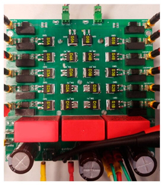 In the experimental setup, the 7LDCB inverter, composed of IPB073N15N5 transistors and VBT10202C Schottky diodes, is used, as shown in Figure 7.