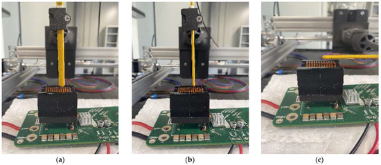 The gallium nitride transistor market is increasing due to the advantages in terms of efficiency and power density [14]. These good features are enabled by their high switching speed (a few nanoseconds) [15,16]. On the other hand, extremely high dv/dt (over 100 V/ns) of the associated voltage waveforms induce severe electromagnetic interference [17,18,19,20]. Hence, the proposed inexpensive system for automatic near-field scanning has been used to analyze the electromagnetic noise generated by the output inductor in a GaN-based bi-directional DC/DC switching converter board. The converter has been used in the 48V–12V step-down buck configuration; a simplified schematic is shown in Figure 13.