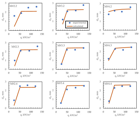 A constant bubble growth rate dR/dt = db/2tg, similar to Walunj and Sathyabhama [48], while the value of the drag coefficient, Cd = 0.5, was assumed according to Pastuszko et al. [49]. The bubble growth period was calculated using the bubble growth equation proposed by Mikic et al. [50]: