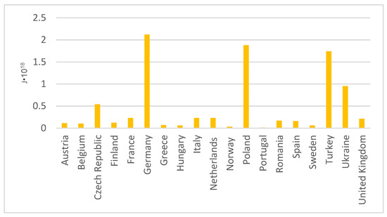 Greenhouse gas emissions and the production of combustion by-products in Europe have prompted attempts to modernise the energy market. As the energy sector is widely developed, there are many options for obtaining electricity in European Union countries. These include primary energy, natural gas, renewable energy sources, nuclear energy, and oil. Although there are so many different options available to countries in Europe, the power sector still uses coal. Figure 7 shows the amount of coal-fired energy generation in Europe [39].