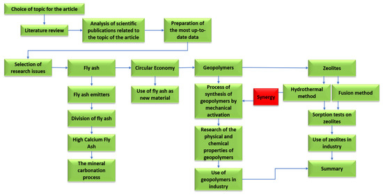 The aim of the article was to focus on the possibility of using fly ash in the context of a circular economy. The authors focused on an in-depth analysis of scientific journals on not only the characteristics of combustion by-products but also their reintroduction into the cycle. The concept of a closed-loop economy makes it possible to make the most out of waste materials not only from industries, but also from households as a new raw material which, due to its properties, can replace natural raw materials used in the chemical and construction industries Figure 1.