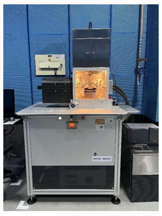 Friction and wear tests were conducted on the piston ring–cylinder liner test specimens using the UMT-2 multifunctional friction and wear test machine. The test bench is shown in Figure 3, which is mainly composed of a reciprocating motion mechanism, load loading mechanism, fixture, and other parts; under the reciprocating driving mode of the test machine, the relative sliding speed of the cylinder liner–piston ring is zero at the two stop positions, and the relative sliding speed of the cylinder liner–piston ring is the maximum at the middle position of the stroke. In the experiment, the piston ring is pressed on the surface of the cylinder liner sample by the normal loading force, simulating the reciprocating motion of the piston ring in the cylinder liner between the upper and lower stops of the actual engine.