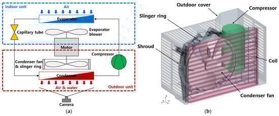 (a) Schematics of WAC and (b) components of an outdoor unit of a WAC as the computational model.