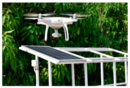 - Rehman, S.; Mohandes, M.A.; Hussein, A.E.; Alhems, L.M.; Al-Shaikhi, A. Cleaning of Photovoltaic Panels Utilizing the Downward Thrust of a Drone. Energies 2022, 15, 8159. [Google Scholar] [CrossRef]