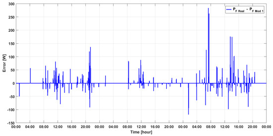 The difference between the measured power and power calculated from the model is presented in Figure 14. The maximal value of error, for three products downloaded, amounted to 136.5 W.