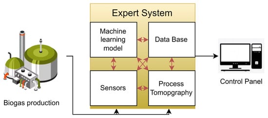 Diagram showing the connection of the expert model to the biogas production line and control panel.