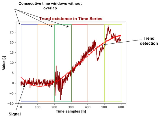 The concept of signal processing in the time domain. Use of a rectangular time window without overlapping; subseries used as an input to trend detection algorithm.