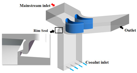 - Wang, L.; Ma, H.; Zhang, J. Experimental Investigation of Effects of Rim Sealing Flow on the Flow Field in a Turbine Cascade Passage with Different Rim Seal Configurations. In Proceedings of the ASME Turbo Expo 2016: Turbomachinery Technical Conference and Exposition, Seoul, Republic of Korea, 13–17 June 2016. [Google Scholar] [CrossRef]