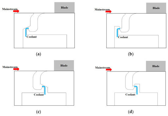 - Zhao, Q.; Yang, X.; Feng, Z. Effects of Rim Seal Geometries on Aerodynamic Performance and Rotor Platform Cooling in a One-Stage Turbine. In Proceedings of the ASME Turbo Expo 2020: Turbomachinery Technical Conference and Exposition, Virtual, 21–25 September 2020. [Google Scholar] [CrossRef]