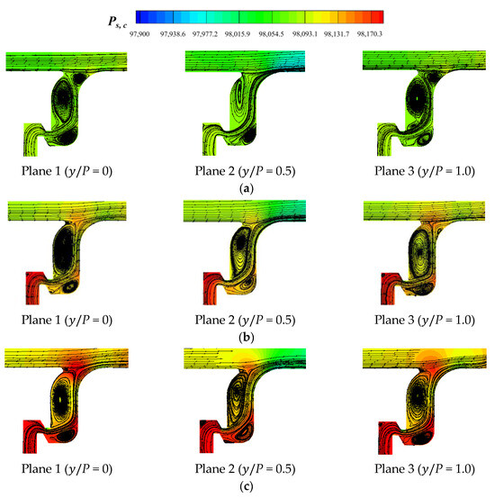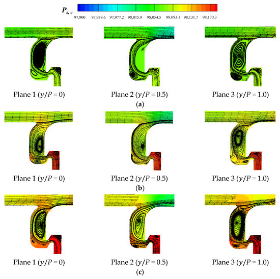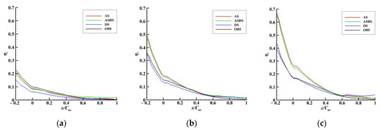 - The case of DS changed the direction of flow out of the seal gap and the size of the two angular vortices at the outlet, resulting in the absorption of cold air energy and a decrease in η. Compared to the cases of ORI and DS, the cases of AS and ASDS had a smaller injection angle, which ultimately led to a higher η.