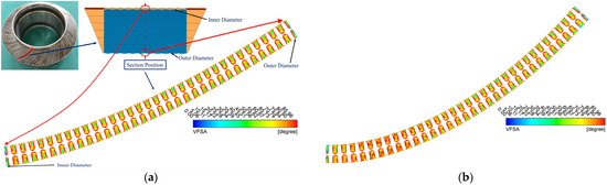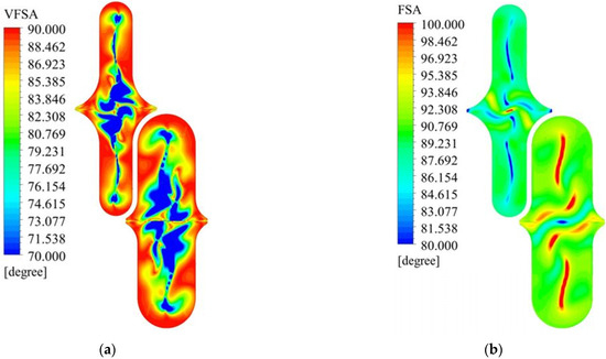 Comparison of FSA and VFSA at the same cross-sectional position. (a) VFSA; (b) FSA.