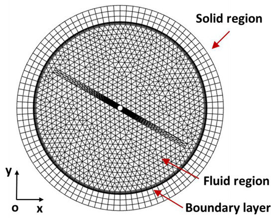 In the current simulation, the computational software ANSYS FLUENT was utilized for solving this problem. The governing equations were discretized by the finite volume method (FVM). At a Peclet number of algal slurry between 1870 and 4523, the second-order upwind and central differencing schemes were used to approximate the convective and diffusion terms in the differential equation, respectively. The velocity–pressure coupled equation was solved in the collocated grid by using the SIMPLE algorithm. The residuals were detected to check the convergence. The residuals of the continuity equation and other equations were set as 10−3 and 10−6, respectively.