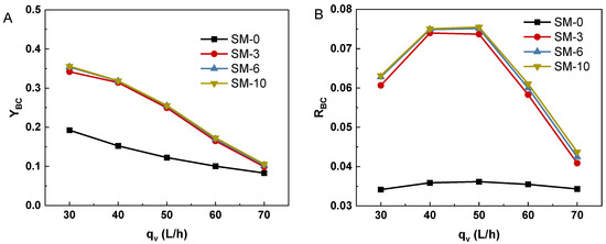 Effect of the static mixer on the (A) YBC and (B) RBC in solar-driven reactor.