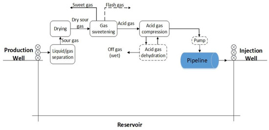 15]. High-pressure acid gas is transported through pipelines to the well site, where it reaches the wellbore in a dense-fluid state (either liquid or supercritical) before being injected into the reservoir through the well tubing [