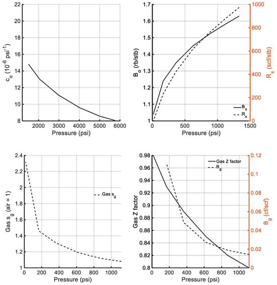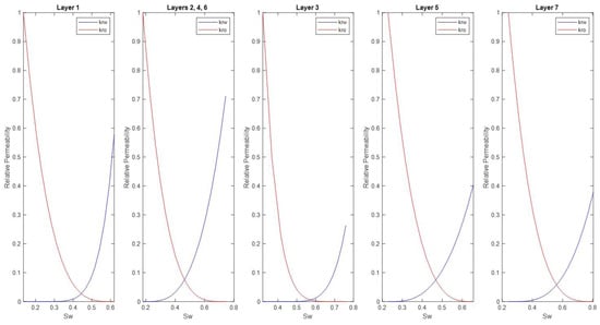 39], based on available PVT data for a reservoir fluid sample obtained through bottomhole sampling. The oil in the field’s reservoirs exhibits an API gravity ranging from 25 to 28 degrees and a GOR of approximately 800 scf/stb. Finally, the dynamic model of the A1 and A2 reservoirs in the “Prinos” field was built using eight rock types, with petroleum fluid–rock interaction properties, such as relative permeability and capillary pressure curves, determined through special core analysis (SCAL) for accurate fluid flow simulation.