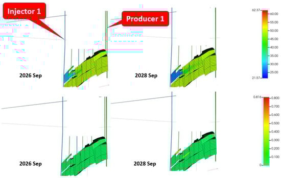 Figure 21, a pressure drop below MMP occurred between 2026 and 2030. To further investigate this effect, two dates covering that period were picked, namely September 2026 and September 2028.