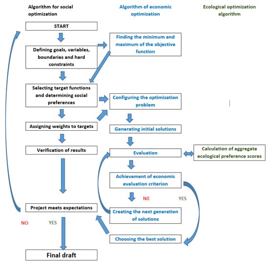 Figure 2. Schematic of the algorithm for multi-stakeholder optimization: business, ecological, and social.