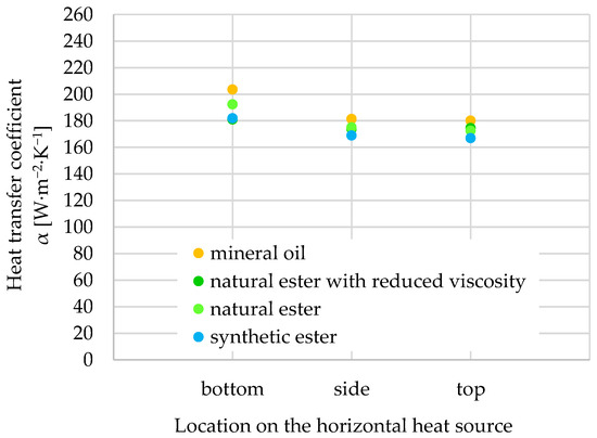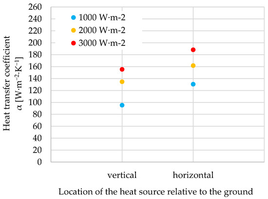 5.2. Heat Transfer Coefficient α for Vertically and Horizontally Positioned Heat Sources
