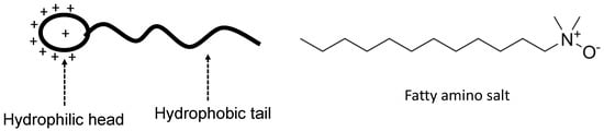 Illustration of a cationic surfactant with an example of fatty amino salt [81].