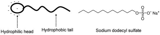 Illustration of an anionic surfactant with an example of sodium dodecyl sulfate (SDS) [81].