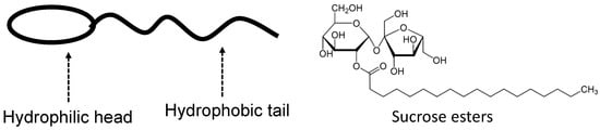 Illustration of a nonionic surfactant with an example of sucrose esters [81].