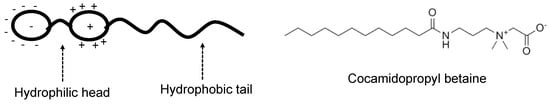 Illustration of zwitterionic surfactant with an example of Cocamidopropyl betaine [81].