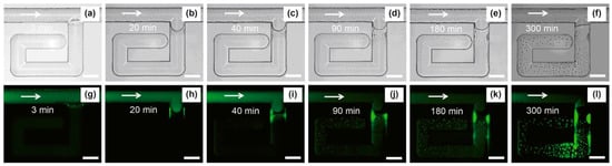 Over the last few decades, two-phase, real-time experiments in micromodels have been incorporated into the core flooding experiments to widen the fundamental understanding of the relative permeability of oil recovery. In fact, various micromodels have shown a different interpretation of the role of wettability in oil recovery. For example, phase saturation in the pore network was considered as the significant parameter controlling relative permeability in the reservoirs, but with the microfluidic experimental studies; it is found that pore structure and flow patterns of the fluid can have a high impact on relative permeability and, to an extent, oil recovery. In one experiment, the investigation of the oil flooding by water with the microfluidic approach with the use of deep learning and an image recognition intelligent model was conducted (Figure 8) [55]. Based on the artificial intelligent models, it was found that the relative permeability or oil recovery is affected by phase saturation, wetting order, and pore structure with 36.23%, 33.20%, and 30.57%, respectively. In that study, different pore diversities with the co-efficient of 0.872, 3.248, and 6.965 with three different flow rates of 50, 100, and 150 µL/min were flooded by water to displace light cured oil (Figure 8a–i). The last three figures (Figure 8j–l) show the displacement of water by light crude oil at 100 µL/min. These many experiments were only feasible due to the microfluidic fabrication approach. In addition, relative permeability is considered a static function of saturation, which means that as saturation changes, the relative permeability instantaneously changes [59,60,61]. This assumption suggests that changes in oil mobility are instantaneous in the wettability alteration process. However, in the microfluidic study conducted by Du et al., the oil saturation changed over time, suggesting that relative permeability is also a function of time [62]. This sort of new information in these two micromodel studies shows that extensive research in micromodels would be beneficial to better understand the effect of relative permeability on oil recovery.