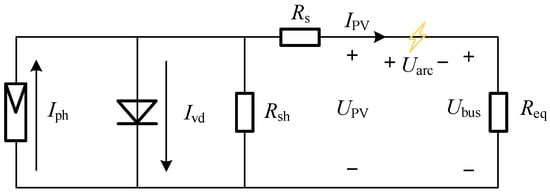 The PV voltage increase due to the series arc causes the PV operating point to move toward the open circuit point. Then, the PV output current decreases, and the decreased value is related to the parameters of the PV module.