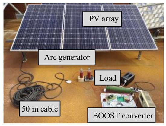 In order to test and verify the practicality of the proposed method for the series arc occurring in the PV string, six PV modules were formed into a PV array (three PV modules in series and two strings in parallel), and the arc generator was placed in the PV strings.