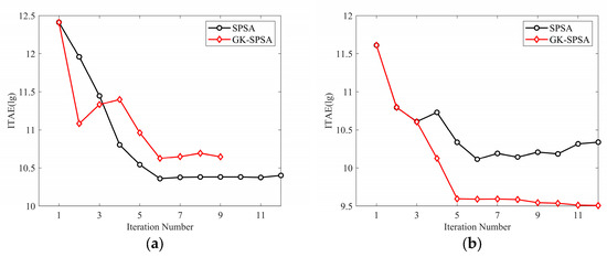 As can be seen from Figure 8, as the optimization process progresses, the ITAE consistently exhibits a significant decrease, indicating that the GK-SPSA optimization method can be applied to this optimization problem, and it also indicates a noteworthy enhancement in the performance of the SGLCS. Moreover, in the whole optimization process, the number of iterations of GK-SPSA is not always smaller than that of SPSA, and the ITAE index of GK-SPSA is not always smaller than that of SPSA, so it is necessary to conduct batch efficiency tests to test the optimization efficiency of GK-SPSA.