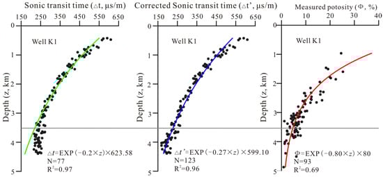 5.2.1. Relationship between Acoustic Travel-Time and Burial Depth