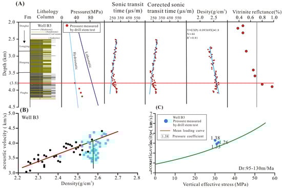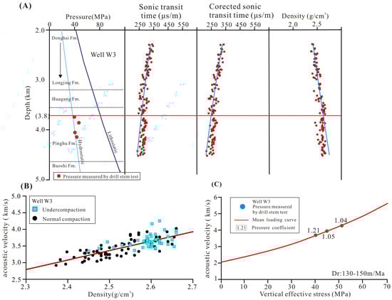 - The compaction and loading laws of mudstone were studied based on organic matter correction. It was identified that under the main control of the sedimentation rate, there are three types of acoustic velocity–effective stress curves of mudstone in the study area. The main causes of abnormally high pressure in the research area are undercompaction and fluid expansion. The fluid expansion mechanisms include the overpressure transmission and hydrocarbon charging within the reservoir as well as the hydrocarbon generation pressurisation and overpressure transmission within the source rock. The formation mechanism of overpressure slightly varies among the different layers.