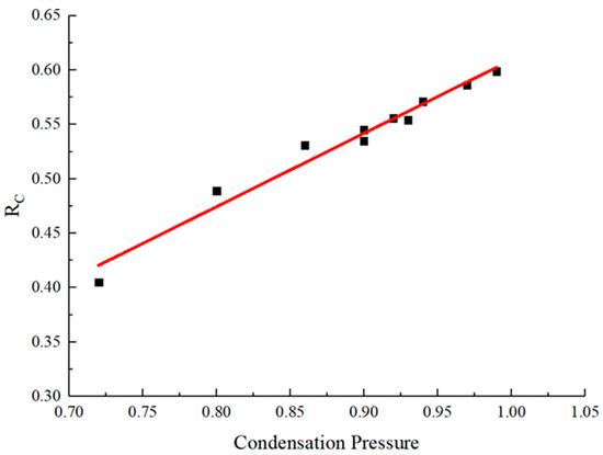 The linear correlation analysis between RC and condensation pressure is shown in Figure 15.