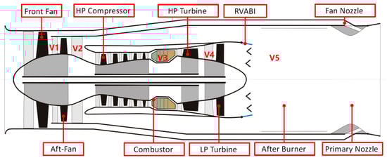 In 2007, the United States proposed an adaptive cycle engine [2], which was considered a technological breakthrough. Additionally, the United States implemented a series of research plans, such as Adaptive Versatile Engine Technology (ADVENT), Adaptive Engine Technology Development (AETD), and the Adaptive Engine Transition Program (AETP). With the support of these research programs, adaptive fans, efficient core engines, and multi-variable control systems were validated [3]. They developed full-scale, three-stream ACEs XA100 and XA101 and performed performance and operational tests [4]. Some researchers have also conducted in-depth research on parameter analysis, overall matching, steady-state characteristics, and control laws of ACEs [5,6].