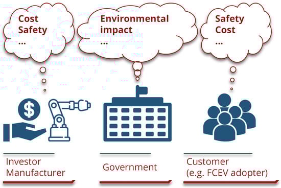Similarly, considerations about safety could shift the preference from a centralized to a decentralized supply chain, in contrast to a network designed exclusively around cost minimization [33,33]. As depicted in Figure 3, different stakeholders possess different primary concerns regarding the HSC network, which stem from diverse considerations of interest. In this light, it is crucial to acknowledge the multidimensionality of the HSC optimization problem, which spans not just cost but also environmental and safety considerations. Recognizing the “three dimensions”—cost, environmental impact, and safety—and integrating them into the HSCDD lays the groundwork for a more balanced and holistic approach to hydrogen infrastructure network construction and optimization, one that aligns with the complex nature of real-world decision-making scenarios.
