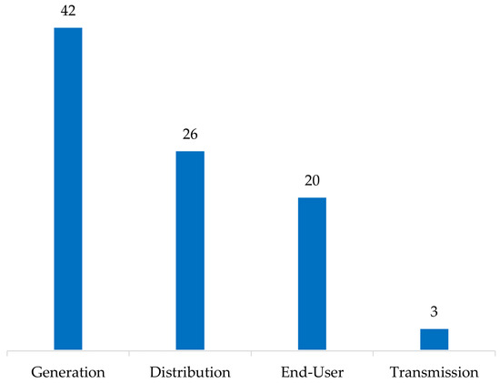 Regarding the energy sector in which BESS is implemented, the key findings are as follows (and Figure 13):