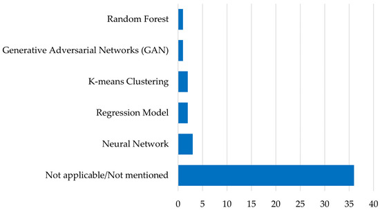 From the graph, it is evident that many articles do not employ any machine learning techniques. However, at least three articles within the SLR specifically utilize Neural Networks (NNs).