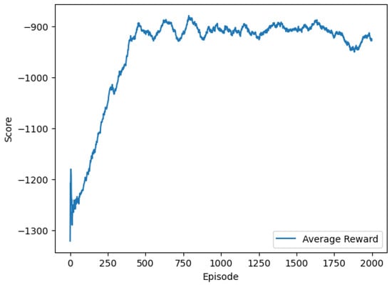 Figure 5 illustrates the training process of the DQN agent. We have run our model multiple times to ensure the reliability and robustness of the observed trends and outcomes. Figure 5 depicts the mean average reward graph and shows that the model converges into an optimal policy starting from episode number 500. This signifies that the agent is optimizing his actions over time. During the training phase, the discount factor was set to over 2000 episodes.