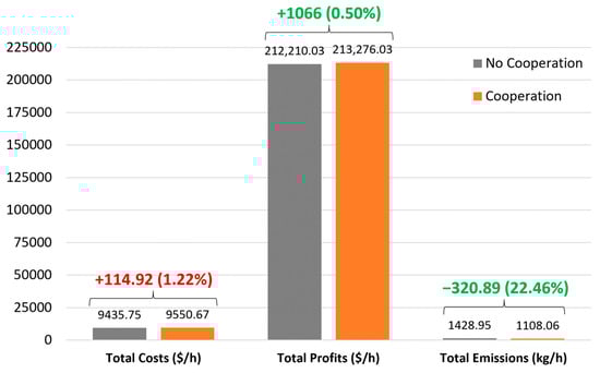 In addition, this division or formation of coalitions needs to improve the payoff of at least one player without decreasing the payoffs of others, which can be ensured by the Pareto order [35]. Consider two distinct sets of disjoint coalitions, and , formed by the same players. For a set , the utility or payoff of a player in a coalition is , which can be determined by the Shapley value. The basic definition of the Pareto order denotes that set is preferred over set only if with at least one strict “greater than” inequality for the utility or payoff of a player [33,35]. Because many of the possible combinations of coalitions are unstable, the Pareto order can be applied iteratively to find a stable coalition partition among all possible combinations of coalitions [33]. It takes into consideration the individual player payoffs [36], being implemented to study the decision-making process of each player to choose a coalition with the purpose of maximizing its expected individual utility or payoff. Hence, players may decide to leave a certain coalition if it is unstable and decide to join another if it is more beneficial for them [33,36].