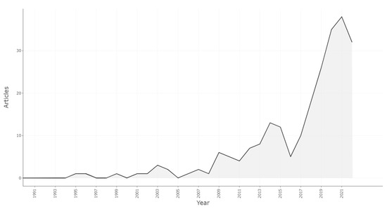 Annual scientific production evolution (by Biblioshiny for bibliometrix [40]).