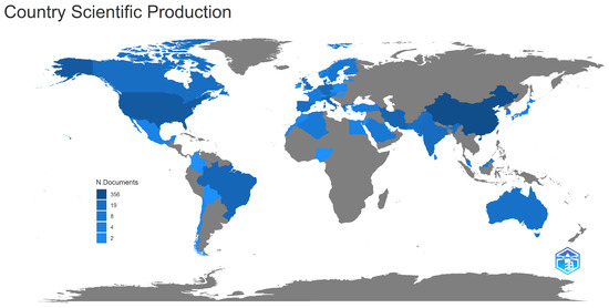 Scientific production by country (by Biblioshiny for bibliometrix).